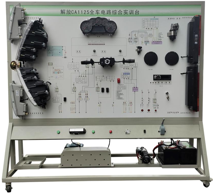 解放CA1125全車電路綜合實訓設備采用解放CA1125J柴油機整車電器實物為基礎,充分展示汽車儀表系統(tǒng)、燈光系統(tǒng)、雨刮系統(tǒng)、喇叭系統(tǒng)、發(fā)動機電器系統(tǒng)、起動系統(tǒng)和充電系統(tǒng)等汽車電器各系統(tǒng)的組成結構和工作過程。