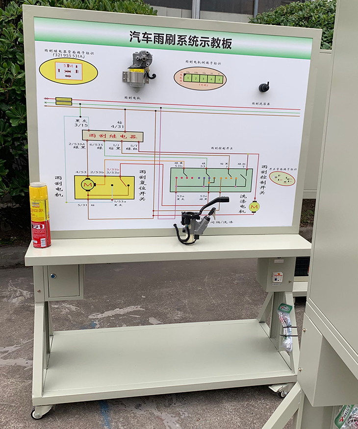 2.示教板面板采用耐創(chuàng)擊、耐污染、防火、防潮的高級鋁塑板,表面經(jīng)特殊工藝噴涂底漆處理;學(xué)校學(xué)員可直觀對照電路圖和實物,認識和分析汽車雨刮和清洗系統(tǒng)的工作原理。