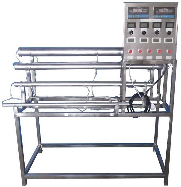 不同長度和直徑的電鍍紫銅管四根,管內設置加熱器,固體調壓模塊無機調節(jié)加熱,測溫傳感器,電功率測試數(shù)顯儀表,萬能信號輸入巡檢儀顯示溫度,各管配有溫度控制儀表,不銹鋼臺架及控制屏等。