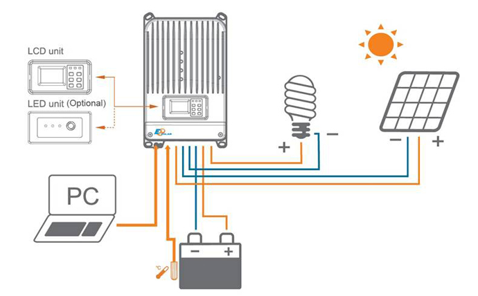 該項目主控系統(tǒng)采用國內(nèi)知名廠商所生產(chǎn)的iTracer系列MPPT控制器,該控制器是一款基于多相位同步整流技術(shù)的高端產(chǎn)品,適用于離網(wǎng)型光伏系統(tǒng),控制器內(nèi)建靈敏的最大功率點跟蹤算法,迅速并準(zhǔn)確地找到光伏電池最大功率點以獲取更多的光伏能源,提高效率,降低系統(tǒng)成本?刂破魍ㄟ^配套USB通訊線可連接PC機(jī)監(jiān)控軟件,可實現(xiàn)單臺或多臺控制器的遠(yuǎn)程實時監(jiān)控、參數(shù)修改、負(fù)載設(shè)置等光伏系統(tǒng)管理功能。