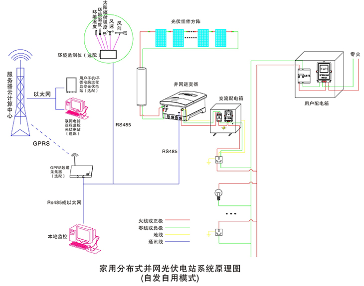 在晴朗的白天,裝在屋頂上的光伏組件發(fā)出的直流電經(jīng)過并網(wǎng)逆變器逆變成與電網(wǎng)同頻率同相位的單相交流電給負(fù)載進(jìn)行供電,在夜晚或陰雨天等太陽光照不足的情況下,系統(tǒng)處于待機(jī)狀態(tài),負(fù)載用電全部來自電網(wǎng)。您可以通過系統(tǒng)監(jiān)控軟件來實(shí)時(shí)查看系統(tǒng)的運(yùn)行狀態(tài)和故障信息,或者是選配遠(yuǎn)程通訊數(shù)據(jù)采集器,將系統(tǒng)工作數(shù)據(jù)通過GPRS或以太網(wǎng),傳輸?shù)侥氖謾C(jī)、平板電腦或任意一臺聯(lián)網(wǎng)的電腦,以便于您遠(yuǎn)程實(shí)時(shí)掌控電站的信息。