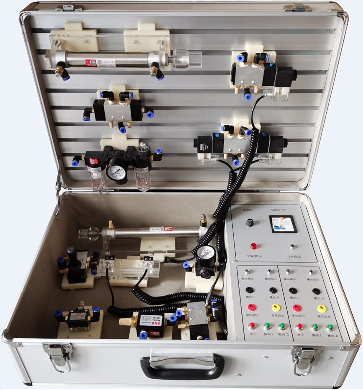 1、實(shí)訓(xùn)箱主要由鋁合金機(jī)箱、各種標(biāo)準(zhǔn)氣動工業(yè)元件、和電氣控制器件等組成。