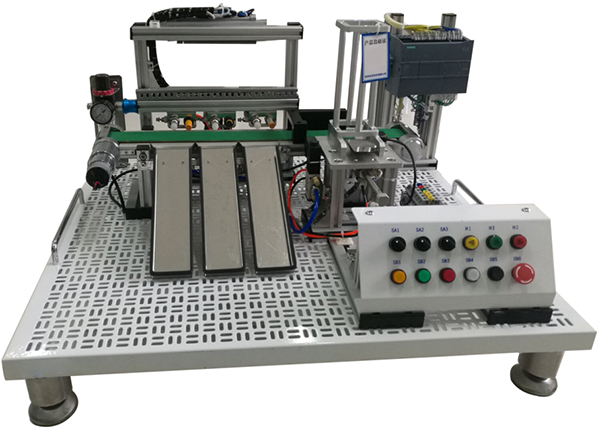 (1)系統(tǒng)包含氣動(dòng)控制、電機(jī)傳動(dòng)、位置控制、傳感器檢測(cè)等內(nèi)容,為實(shí)際工業(yè)現(xiàn)場(chǎng)生產(chǎn)設(shè)備的微縮裝置。基于多種傳感器的檢測(cè)的精確定位,實(shí)現(xiàn)對(duì)不同材質(zhì)、不同顏色物體的分揀?沙浞皱憻挷僮髡呦到y(tǒng)接線、機(jī)械調(diào)試安裝、軟件編程、獨(dú)立構(gòu)建控制系統(tǒng)、反饋整定、故障檢測(cè)及檢修的能力。配有空氣壓縮機(jī):靜音無(wú)油,工作電源AC220V±10% 50Hz,輸入功率0.68kW;公稱(chēng)容積24L,理論流量:116L/min,額定輸出氣壓0.7MPa。