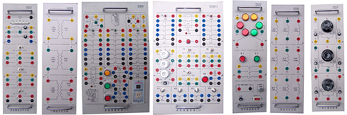 提供中間繼電器(線圈電壓220V)二只,熱繼電器一只,熔斷器三只,轉(zhuǎn)換開(kāi)關(guān)三只,按鈕一只,行程開(kāi)關(guān)四只,信號(hào)燈、保險(xiǎn)絲座各一只。各器件的工作端子均已引到面板上,供實(shí)驗(yàn)接線用,中間繼電器及熱繼電器的工作狀態(tài)用發(fā)光二極管指示。