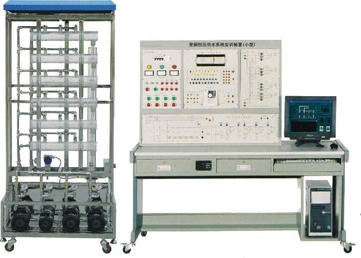 變頻恒壓供水系統(tǒng)實(shí)訓(xùn)裝置,集PLC、變頻調(diào)速、過(guò)程控制、工程組態(tài)技術(shù)于一體。它由六層住宅消防、生活供水系統(tǒng)(實(shí)物模型),控制平臺(tái)兩大部分組成,包含了可編程控制器、變頻器、變頻磁力驅(qū)動(dòng)泵、休眠泵、消防泵、壓力變送器、壓力儀表、輸水管道、消防栓、家用水龍頭、蓄水池等工程設(shè)備?刂破脚_(tái)采用PLC+變頻器的開放式控制結(jié)構(gòu),可以完成多種模式下的樓層恒壓供水實(shí)訓(xùn)實(shí)訓(xùn),為教學(xué)研究變頻恒壓供水技術(shù)提供一個(gè)開放的操作平臺(tái)。它是一款適合于大學(xué)及中、高職院校電氣自動(dòng)化、樓宇自動(dòng)化、建筑電氣、智能建筑等專業(yè)的綜合型技能實(shí)訓(xùn)考核設(shè)備。