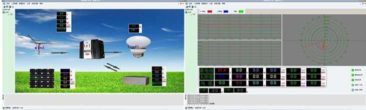 ◆ 顯示內(nèi)容:蓄電池電壓、風機電壓、光伏電壓、風機電流、光伏電流、風機功率、光伏功率,能量模擬圖,當前風速(米/秒),當前風向(度),當前風力資源平估。