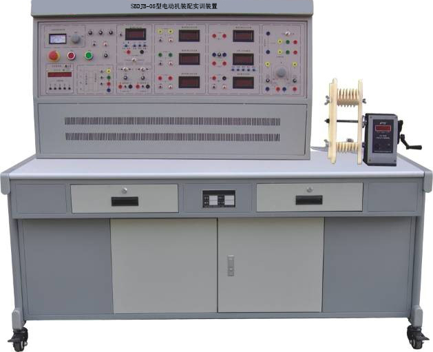 電機(jī)檢測(cè)技術(shù)應(yīng)用實(shí)訓(xùn)室,電機(jī)裝配與運(yùn)行檢測(cè)實(shí)訓(xùn)考核裝置,每套裝置由測(cè)控工作面板、模擬負(fù)載臺(tái)、實(shí)訓(xùn)網(wǎng)孔掛板等組成。
