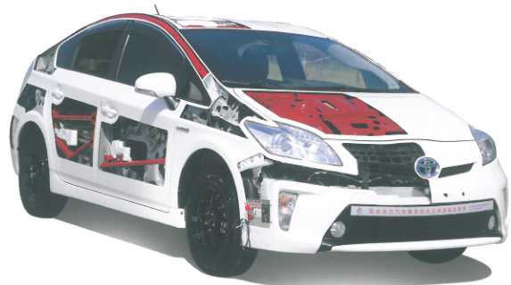車身解剖部位:對(duì)半解剖,副座側(cè)2車門(mén)內(nèi)外解剖(運(yùn)行件外可觀察);前蓋對(duì)對(duì)半解剖(外可觀察電機(jī)與變速器運(yùn)行);后蓋對(duì)對(duì)半解剖(外可觀察行李箱內(nèi)部器件);前后保險(xiǎn)桿對(duì)半解剖;