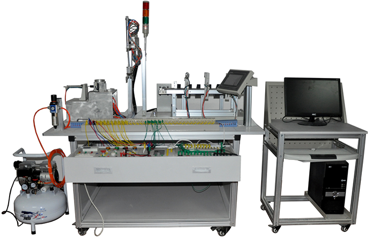 光機(jī)光機(jī)電氣一體化控制實訓(xùn)系統(tǒng)是各大、中專院校、高職高專院校的 教學(xué)、考核實訓(xùn)裝置,廣泛用于教學(xué)實訓(xùn)、課程設(shè)計和畢業(yè)設(shè)計。 目前各種光、機(jī)、電、氣實訓(xùn)裝置,電氣一體化實訓(xùn)裝置由鋁合金導(dǎo)軌式實訓(xùn)臺、典型的機(jī)電一體化設(shè)備的機(jī)械部件、PLC模塊、變頻器模塊、按鈕模塊、電源模塊、模擬生產(chǎn)設(shè)備實訓(xùn)模塊、接線端子排和各種傳感器、計算機(jī)等組成。整體結(jié)構(gòu)采用開放式和拆裝式,實訓(xùn)裝置用于機(jī)械部件組裝,可根據(jù)現(xiàn)有的機(jī)械部件組裝生產(chǎn)設(shè)備,也可添加機(jī)械部件組裝其他生產(chǎn)設(shè)備,使整個裝置能夠靈活的按教學(xué)或競賽要求組裝具有生產(chǎn)功能的機(jī)電一體化設(shè)備。模塊采用標(biāo)準(zhǔn)結(jié)構(gòu)和抽屜式模塊放置架,互換性強(qiáng);同時還要求具有可拓展功能,可以組成更加大型的生產(chǎn)模擬系統(tǒng),以配合各個用戶學(xué)校不同層次,不同專業(yè)的教學(xué)及培訓(xùn)要求。