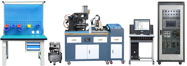 1.實(shí)訓(xùn)臺(tái):采用鐵質(zhì)雙層亞光密紋噴塑結(jié)構(gòu),包括控制區(qū)域和機(jī)械裝調(diào)區(qū)域兩部分?刂茀^(qū)域主要由控制面板、電源轉(zhuǎn)換接口、控制按鈕等組成;機(jī)械裝調(diào)區(qū)域采用鑄件操作臺(tái)面,學(xué)生可在上面安裝和調(diào)整各種機(jī)械機(jī)構(gòu)。