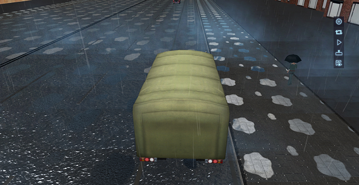 7.6、場景天氣類型具有:晴天、陰天、雨天、雪天、霧天、夜晚等模塊,不同天氣有不同場景效果,同時(shí)路面有不同的屬性。道路上的行人密度、車輛密度可調(diào)節(jié).
