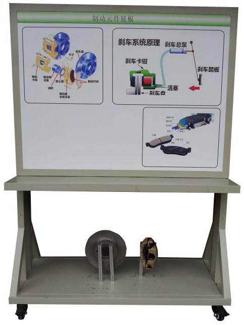 汽車(chē)制動(dòng)系示教板該設(shè)備采用全新大眾捷達(dá)汽車(chē)制動(dòng)系統(tǒng)為基礎(chǔ),充分展示汽車(chē)制動(dòng)系統(tǒng)的組成結(jié)構(gòu)。