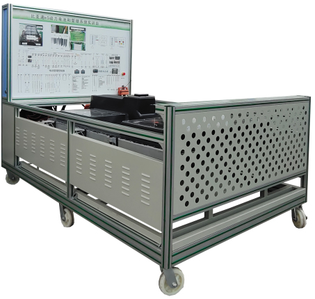 (比亞迪e5 EV300純電動(dòng)汽車) 鋰動(dòng)力電池組、電池管理系統(tǒng)BMS、BMS顯示屏(7寸觸摸屏)、維修開(kāi)關(guān)、輔助蓄電池(12V45AH)、高壓配電箱、漏電傳感器、車載充電機(jī)、國(guó)標(biāo)充電插座與充電槍、直流接觸器(包含充電繼電器、總正繼電器、總負(fù)繼電器、預(yù)充繼電器)、急停開(kāi)關(guān)與電源總開(kāi)關(guān)、一體化全鋁合金型材搭建的移動(dòng)臺(tái)架(1500×700×1700mm ,帶自鎖腳輪裝置,帶安裝檢測(cè)端子的原理面板1448×940mm)、故障考核系統(tǒng)、設(shè)備操作說(shuō)明書。