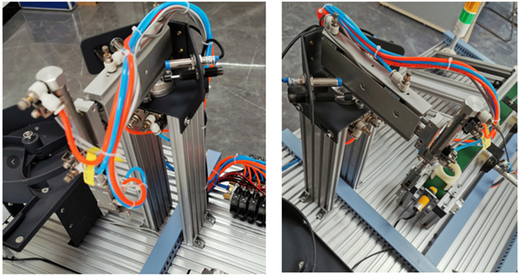 該系統(tǒng)上使用了的大量的氣動(dòng)元件,包括了多種電氣控制閥、多種氣缸、氣動(dòng)夾具、過(guò)濾調(diào)壓器、節(jié)流閥等,結(jié)合該系統(tǒng)的實(shí)際典型應(yīng)用以及每個(gè)氣動(dòng)元器件的應(yīng)用實(shí)際,可單獨(dú)的學(xué)習(xí)每一種氣動(dòng)元器件的工作原理、應(yīng)用場(chǎng)合等,包括各個(gè)氣動(dòng)元器件的之間是如何配合起來(lái)進(jìn)行優(yōu)化設(shè)計(jì)和應(yīng)用的。
