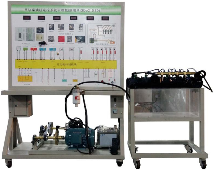 1.真實(shí)可運(yùn)行的共軌柴油發(fā)動(dòng)機(jī)燃油噴射系統(tǒng),充分展示燃油噴射系統(tǒng)的組成結(jié)構(gòu)和工作過(guò)程。電機(jī)驅(qū)動(dòng)曲軸位置信號(hào)輪,可演示電子燃油噴射工作情況。