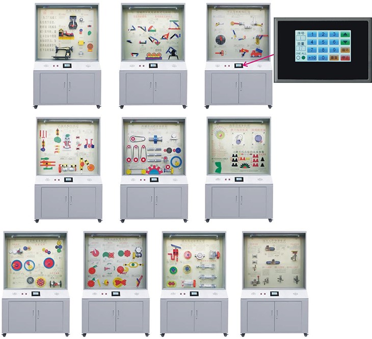 根據(jù)全國技工學(xué)校機械類通用教材《機械基礎(chǔ)》示教陳列柜是一套電化教學(xué)設(shè)備。本陳列柜共分十個柜,陳列柜通過機械模型或?qū)嵨,配合相?yīng)的圖文資料,形象地展示與解說機械基礎(chǔ)的基本知識,加強學(xué)生對通用機械基礎(chǔ)的類型、結(jié)構(gòu)特點及其設(shè)計的感性認知,為進一步學(xué)習(xí)機械基礎(chǔ)奠定基礎(chǔ)。