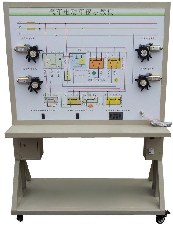 汽車電器構(gòu)造維修實訓(xùn)設(shè)備,電控門窗中控門鎖實驗臺、儀表照明系統(tǒng)實訓(xùn)臺、安全氣囊示教板、整車接線臺架等實訓(xùn)設(shè)備。能對汽車電器的有關(guān)系統(tǒng)進(jìn)行結(jié)構(gòu)認(rèn)識、原理分析、故障診斷等各方面的教學(xué),整車接線臺架還可使學(xué)生自己動手完成整車電路的連接,提高了學(xué)生動手能力。服務(wù)專業(yè):汽車運用與維修專業(yè)。服務(wù)的課程:汽車電器設(shè)備、汽車檢測技術(shù)等有關(guān)課程的實訓(xùn)教學(xué)。