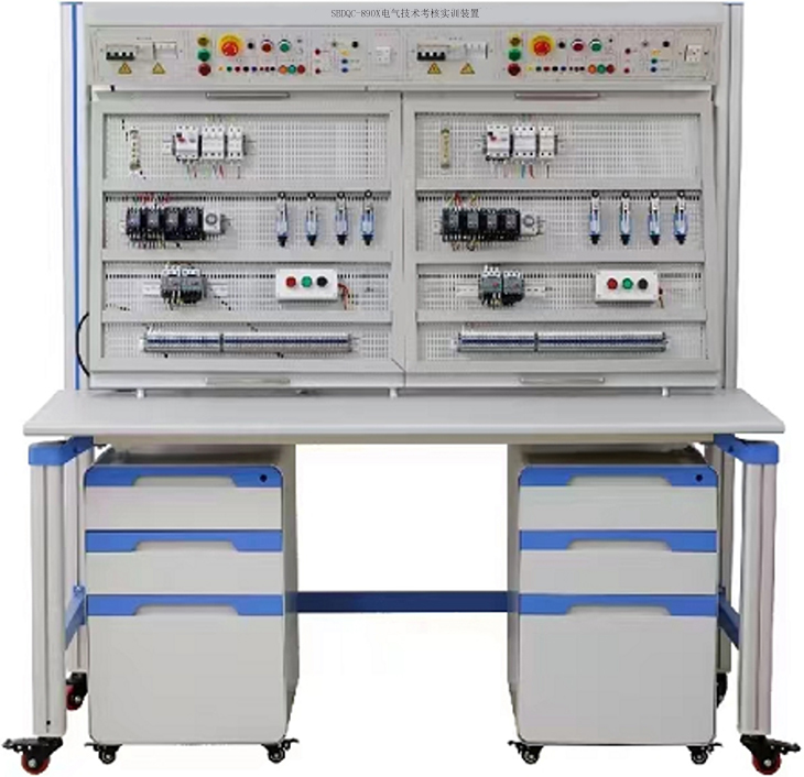 電氣安裝與維修實(shí)訓(xùn)考核裝置是根據(jù)工廠電氣安裝和室內(nèi)電氣安裝等維修 電工和電氣安裝工實(shí)訓(xùn)鑒定要求開發(fā)的一種通用實(shí)訓(xùn)平臺(tái)。 適合于各類職業(yè)院校 和技工學(xué)校維修電工、 電氣安裝工、水電工等有電氣實(shí)訓(xùn)要求的相關(guān)專業(yè)的作為 公共實(shí)訓(xùn)平臺(tái)使用。 采用鋼制網(wǎng)孔板和鋼制專用型材組接而成,安裝有自鎖式腳輪,方便移動(dòng)和使用。裝 置表面噴塑,色彩穩(wěn)重氣派。電氣安裝與維修實(shí)訓(xùn)裝置設(shè)計(jì)高度以人站在一級(jí)人字梯即可方便操作的高度,既安 全又能使使用者感受到施工現(xiàn)場(chǎng)環(huán)境。 橫向、 叢向?qū)挾群线m, 可以模擬現(xiàn)場(chǎng)線路的轉(zhuǎn)向布置。