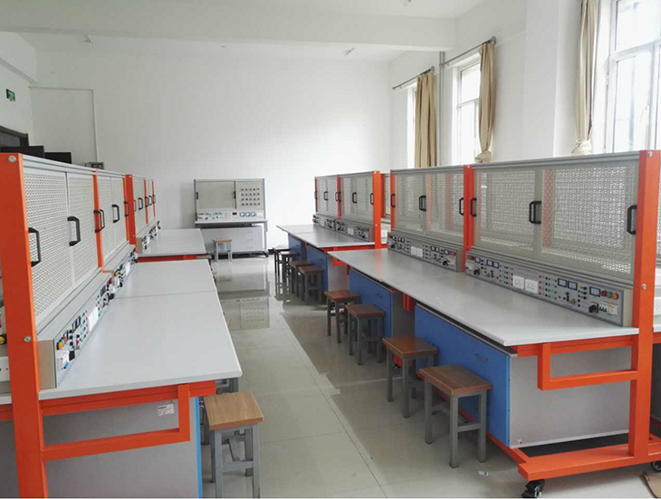 中級(jí)維修電工實(shí)訓(xùn)室有中級(jí)維修電工實(shí)訓(xùn)臺(tái),面向電氣自動(dòng)化技術(shù)、應(yīng)用電子技術(shù)、機(jī)電一體化技術(shù)等專業(yè),可以進(jìn)行工廠電氣控制設(shè)備技能訓(xùn)練、機(jī)床電路、電氣控制與PLC技能訓(xùn)練等項(xiàng)目的實(shí)訓(xùn)教學(xué),并可以進(jìn)行中級(jí)維修電工技能鑒定工作。
