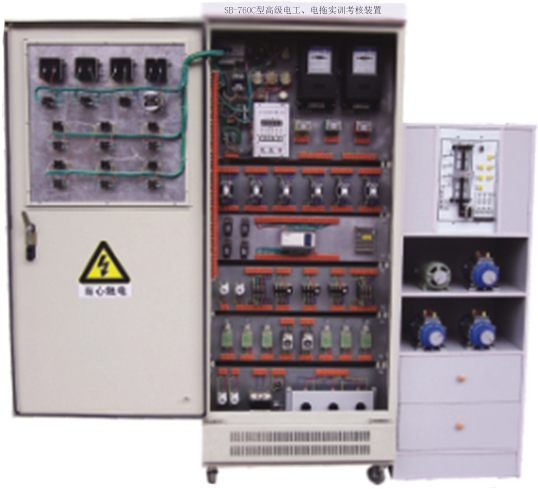 高級電工、電拖實訓考核裝置是按照勞動社會保障部頒發(fā)的“工人技術(shù)等級標準”和“職業(yè)技能鑒定規(guī)范”的內(nèi)容要求,根據(jù)初級電工培訓考核的實際情況而設計的新一代集培訓學習、理論驗證、實際操作能力、考核鑒定于一體的多功能柜式設備。整臺設備以標準的電氣控制柜為主柜,利用柜體的雙面空間,布置電器 及配套實驗器材,能完成初級電工考核鑒定中的電力拖動控制與照明電路的實操項目,該電工、電拖實訓考核裝置堅持理論聯(lián)系實際的原則,突出技能訓練,注重針對性、實用性、科學性,經(jīng)全國多家職業(yè)技能訓練中心、職校、技校使用證明,該柜體設計合理、實操方便,占地面積少。為延長電器的使用壽命,各電器的接點都與接線端子相連,再讓學生在接線端子上接線,連接電機、電器來完成各項控制實驗,有效降低材料消耗,延長使用壽命。該套設備適用于各勞動職業(yè)技能鑒定部門,同時適應各大、中專、技校、職校初級電工、電拖專業(yè)教學與實訓考核。