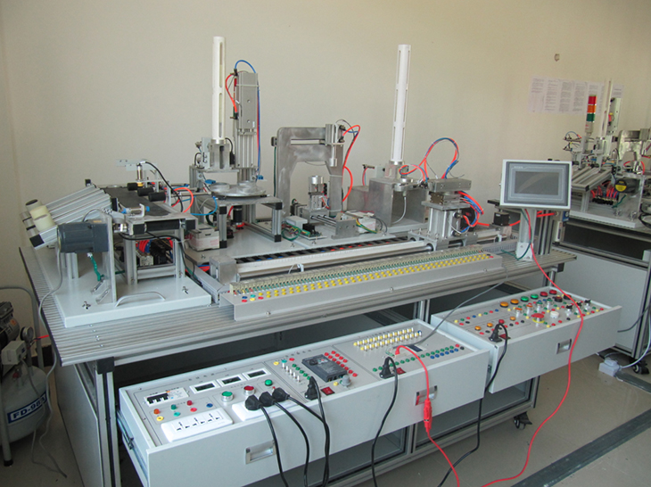 機(jī)電一體化技術(shù)實(shí)訓(xùn)設(shè)備是指機(jī)械技術(shù)、電工電子技術(shù)、微電子技術(shù)、信息技術(shù)、傳感器技術(shù)、接口技術(shù)、信號(hào)變換技術(shù)等多種技術(shù)進(jìn)行有機(jī)地結(jié)合,并綜合應(yīng)用到實(shí)際中去的技能實(shí)訓(xùn)綜合技術(shù),現(xiàn)代化的自動(dòng)生產(chǎn)設(shè)備幾乎可以說都是機(jī)電一體化的設(shè)備。自動(dòng)化生產(chǎn)線實(shí)訓(xùn)考核系統(tǒng),可以培養(yǎng)和提高學(xué)生專業(yè)綜合能力,是一種重要的實(shí)訓(xùn)設(shè)備。自動(dòng)化生產(chǎn)線實(shí)訓(xùn)系統(tǒng)、基于PLC技術(shù)的自動(dòng)化生產(chǎn)線實(shí)訓(xùn)考核系統(tǒng),可以培養(yǎng)和提高學(xué)生專業(yè)綜合能力,是一種重要的實(shí)訓(xùn)設(shè)備。自動(dòng)化生產(chǎn)線實(shí)訓(xùn)系統(tǒng)整體包括自動(dòng)供料、檢測傳輸、檢測加工、自動(dòng)裝配、自動(dòng)分揀等工序,很好的將機(jī)械技術(shù)、微電子技術(shù)、電工電子技術(shù)、傳感測試技術(shù)、接口技術(shù)、信息變換技術(shù)、網(wǎng).絡(luò)通信技術(shù)等多種技術(shù)有機(jī)地結(jié)合。該系統(tǒng)中自動(dòng)分揀站的設(shè)計(jì)過程,包括系統(tǒng)硬件設(shè)計(jì)、PLC控制設(shè)計(jì)和程序設(shè)計(jì)方法,F(xiàn)代化的自動(dòng)生產(chǎn)設(shè)備的最大特點(diǎn)是它的綜合性和系統(tǒng)性,在這里,機(jī)械技術(shù)、微電子技術(shù)、電工電子技術(shù)、傳感測試技術(shù)、接口技術(shù)、信息變換技術(shù)、網(wǎng)絡(luò)通信技術(shù)等多種技術(shù)有機(jī)地結(jié)合,并綜合應(yīng)用到生產(chǎn)設(shè)備中:而系統(tǒng)性指的是,生產(chǎn)線的傳感檢測、傳輸與處理、控制、執(zhí)行與驅(qū)動(dòng)等機(jī)構(gòu)在微處理單元的控制下協(xié)調(diào)有序地工作,有機(jī)地融合在一起?删幊绦蚩刂破(PLC)以其高抗干擾能力、高可靠性、高性能價(jià)格比且編程簡單而廣泛地應(yīng)用在現(xiàn)代化的自動(dòng)生產(chǎn)設(shè)備中,擔(dān)負(fù)著生產(chǎn)線的大腦一微 處理單元的角色。因此,培養(yǎng)掌握機(jī)電一體化技術(shù),掌握PLC技術(shù)及PLC網(wǎng)絡(luò)技術(shù)的技術(shù)人材是當(dāng)務(wù)之急。而一套基于PLC技術(shù)的自動(dòng)化生產(chǎn)線實(shí)訓(xùn)考核設(shè)備可以模擬一個(gè)與實(shí)際生產(chǎn)情況+分接近的控制過程,使學(xué)習(xí)者得到一個(gè)非常接近于實(shí)際的教學(xué)設(shè)備環(huán)境,從而縮短了理論教學(xué)與實(shí)際應(yīng)用之間的距離。自動(dòng)分揀站需完成對(duì)上一單元送來的已加工、裝配的工件進(jìn)行分揀。使不同顏色的工件從不同的料槽分流的功能。當(dāng)輸送站送來工件放到傳送帶上并為入料口光電傳感器檢測到時(shí),即啟動(dòng)變頻器,工件開始送入分揀區(qū)進(jìn)行分揀。上海碩博弘揚(yáng)大國工匠精神, 發(fā)展職業(yè)教育,應(yīng)用教學(xué)設(shè)備,為企業(yè)培養(yǎng)高技能人才,而專業(yè)生產(chǎn):光機(jī)電一體化(自動(dòng)生產(chǎn)線)實(shí)訓(xùn)裝置、灌裝自動(dòng)化生產(chǎn)線實(shí)訓(xùn)裝置、工業(yè)自動(dòng)生產(chǎn)線實(shí)訓(xùn)裝置 、工業(yè)控制模擬實(shí)訓(xùn)裝置 、機(jī)電一體化組合實(shí)訓(xùn)平臺(tái) 、機(jī)電一體化綜合實(shí)訓(xùn)考核裝置、自動(dòng)化生產(chǎn)安裝與調(diào)試實(shí)訓(xùn)裝置 、光機(jī)電一體化高速分揀實(shí)訓(xùn)系統(tǒng) 、典型機(jī)電設(shè)備安裝與控制實(shí)訓(xùn)裝置、模塊式柔性自動(dòng)環(huán)形生產(chǎn)線實(shí)驗(yàn)系統(tǒng)(帶機(jī)器人工程型)、立體停車庫實(shí)物教學(xué)實(shí)驗(yàn)裝置、機(jī)電一體化柔性生產(chǎn)線加工實(shí)訓(xùn)系統(tǒng)(5站)、網(wǎng)絡(luò)型模塊式柔性自動(dòng)化生產(chǎn)線實(shí)驗(yàn)系統(tǒng)、模塊式柔性自動(dòng)環(huán)形生產(chǎn)線實(shí)驗(yàn)系統(tǒng)(工程型)、柔性生產(chǎn)制造實(shí)驗(yàn)系統(tǒng)(工程型)、現(xiàn)代物流倉儲(chǔ)自動(dòng)化實(shí)驗(yàn)系統(tǒng)、運(yùn)動(dòng)實(shí)訓(xùn)裝置、循環(huán)搬運(yùn)自動(dòng)控制實(shí)訓(xùn)裝置、平面雙軸運(yùn)行控制實(shí)訓(xùn)裝置、工業(yè)機(jī)械手實(shí)訓(xùn)裝置、物料分揀實(shí)訓(xùn)裝置、機(jī)械手實(shí)訓(xùn)裝置 、立體倉庫實(shí)訓(xùn)裝置、十字路口交通燈實(shí)訓(xùn)系統(tǒng)、機(jī)電液氣一體化綜合實(shí)訓(xùn)裝置、光機(jī)電一體化高速分揀實(shí)訓(xùn)系統(tǒng)、步進(jìn)伺服控制綜合實(shí)訓(xùn)平臺(tái)、光機(jī)電氣一體化控制實(shí)訓(xùn)系統(tǒng)、 光機(jī)電一體化綜合實(shí)訓(xùn)考核裝置、光機(jī)電一體化實(shí)訓(xùn)考核裝置、光機(jī)電一體化實(shí)訓(xùn)考核裝置、光機(jī)電氣一體化控制實(shí)訓(xùn)系統(tǒng)、自動(dòng)生產(chǎn)線拆裝與調(diào)試實(shí)訓(xùn)裝置、柔性自動(dòng)化生產(chǎn)線實(shí)訓(xùn)系統(tǒng)。
