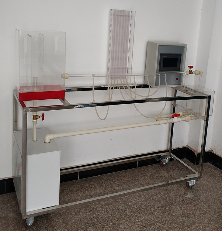 仿真演示軟件;能讓學(xué)生在電腦上更直觀地觀看模擬動態(tài)實驗,比如可以做成動畫軟件。儲水箱,三種不同管徑的實驗管段;取壓管;閥門;測壓傳感器;調(diào)節(jié)閥;回水箱;流量數(shù)顯裝置;回水管;移動不銹鋼實驗臺。