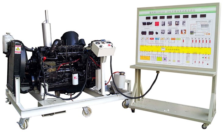 CA1125柴油發(fā)動機總成、組合儀表、發(fā)動機控制單元、散熱系統(tǒng)(水箱、風扇、上下水管)、排氣系統(tǒng)、進氣系統(tǒng)(進氣軟管、空氣濾清器總成)、原車電路原理圖板及檢測端子面板、蓄電池、電源總開關、燃油箱、油水分離器、油門踏板裝置、可移動機臺架、臺架高溫及轉動等部位加裝防護裝置等。