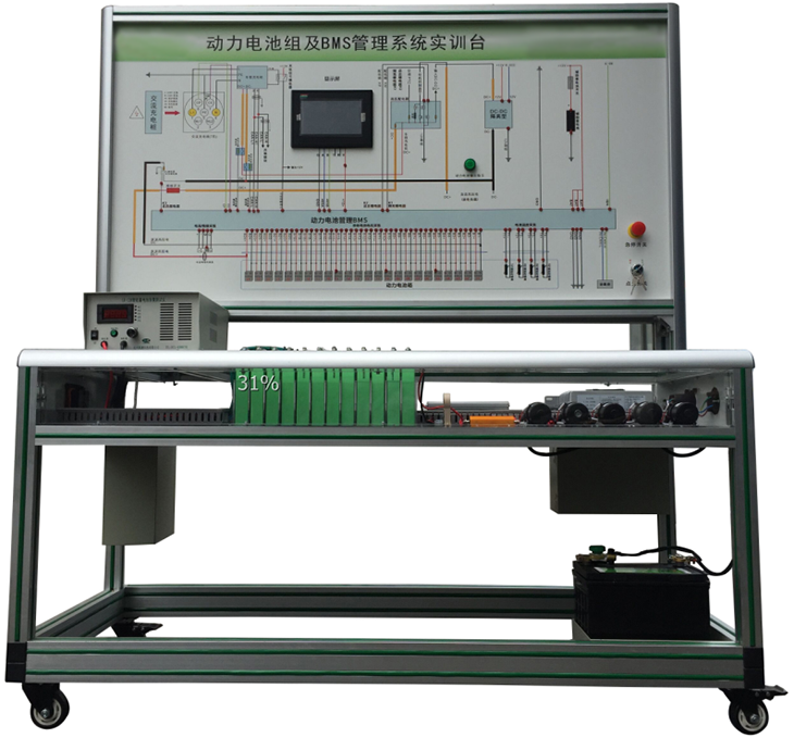 選用新能源車輛 磷酸鐵鋰 動(dòng)力電池包,單體電池(3.2V20AH,共24串),帶CAN總線的一體機(jī)BMS電池管理系統(tǒng),有被動(dòng)均衡功能;真實(shí)地呈現(xiàn)了磷酸鐵鋰動(dòng)力電池包核心零部件之間的連接控制關(guān)系、安裝位置和運(yùn)行參數(shù),以及高壓系統(tǒng)安全注意事項(xiàng),并培養(yǎng)學(xué)員對(duì)磷酸鐵鋰動(dòng)力電池包(BMS)故障分析和處理能力。適用于了解與驗(yàn)證電動(dòng)汽車的動(dòng)力電池參數(shù)進(jìn)行實(shí)時(shí)監(jiān)控、故障診斷、SOC估算、短路保護(hù)、絕緣檢測(cè)、充放電控制、均衡等功能,并通過(guò)CAN總線的方式與帶CAN通訊的車載充電機(jī)進(jìn)行信息交互,保障電動(dòng)汽車高效、可靠、安全運(yùn)行的BMS教學(xué)實(shí)訓(xùn)實(shí)驗(yàn)。