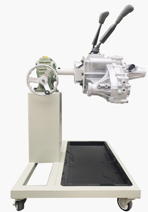 采用減速翻轉(zhuǎn)機構(gòu),可使變速器旋轉(zhuǎn)任意角度,并能任意位置鎖止,便于學生從不同的角度進行拆卸和裝配。