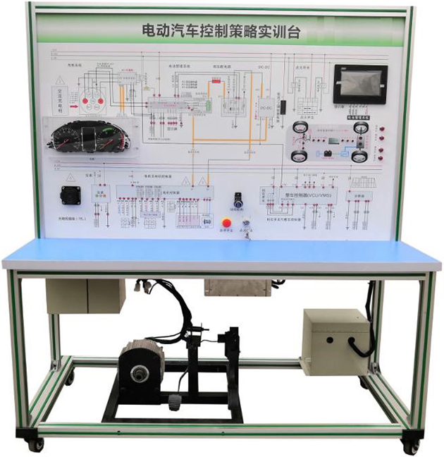 純電動汽車電控系統(tǒng)教學平臺采用純電動車控制策略系統(tǒng)(包含電機控制、電池管理、VCU控制、車載充電機、電源轉換系統(tǒng)、高壓安全系統(tǒng))的真實器件制作,包含電池及管理系統(tǒng)、電機及控制系統(tǒng)、車載充電系統(tǒng)、整車控制器VCU及控制系統(tǒng)、電源轉換系統(tǒng)(AC-DC模塊、DC-DC模塊、DC-AC模塊)、高壓安全系統(tǒng),真實展示電動汽車控制策略系統(tǒng)的結構原理與工作過程,純電動車控制策略系統(tǒng)動力性能、可靠性能、安全性能。實現控制策略演示驗證操作,包括起步模式、正常驅動模式、能量管理策略、安全控制策略以及其他情況下的控制策略等,并對控制策略進行檢測分析診斷。