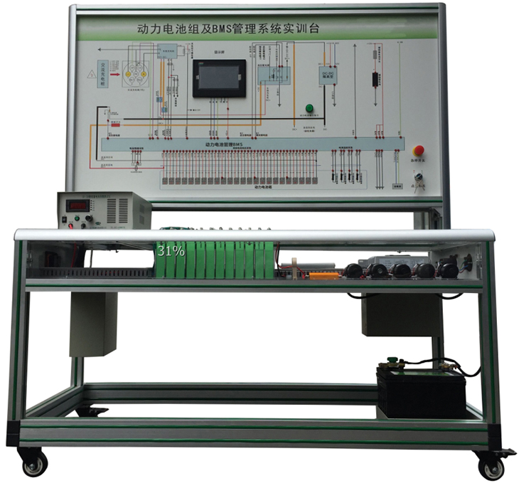動(dòng)力電池管理系統(tǒng)實(shí)訓(xùn)臺(tái)選用新能源車輛磷酸鐵鋰 動(dòng)力電池包,單體電池(3.2V20AH,共24串),帶CAN總線的一體機(jī)BMS電池管理系統(tǒng),有被動(dòng)均衡功能;真實(shí)地呈現(xiàn)了磷酸鐵鋰動(dòng)力電池包核心零部件之間的連接控制關(guān)系、安裝位置和運(yùn)行參數(shù),以及高壓系統(tǒng)安全注意事項(xiàng),并培養(yǎng)學(xué)員對(duì)磷酸鐵鋰動(dòng)力電池包(BMS)故障分析和處理能力。適用于了解與驗(yàn)證電動(dòng)汽車的動(dòng)力電池參數(shù)進(jìn)行實(shí)時(shí)監(jiān)控、故障診斷、SOC估算、短路保護(hù)、絕緣檢測(cè)、充放電控制、均衡等功能,并通過(guò)CAN總線的方式與帶CAN通訊的車載充電機(jī)進(jìn)行信息交互,保障電動(dòng)汽車高效、可靠、安全運(yùn)行的BMS教學(xué)實(shí)訓(xùn)實(shí)驗(yàn)。