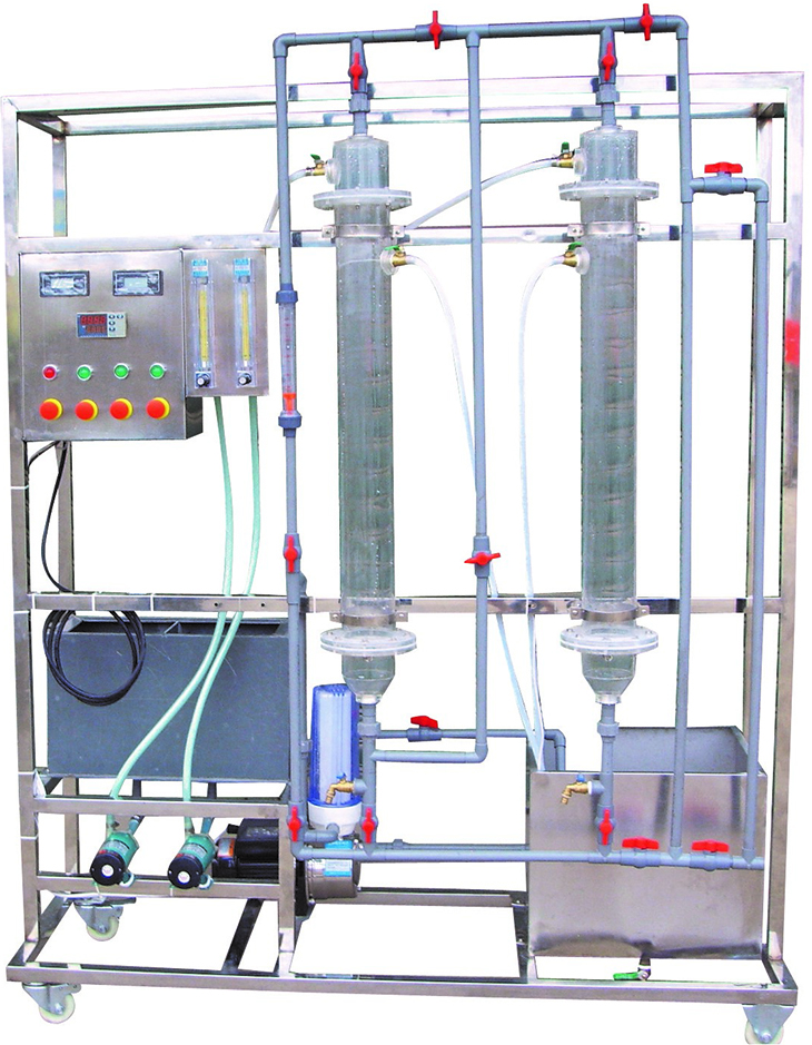 離子交換實(shí)驗(yàn)裝置由陰、陽交換柱、耐酸堿泵、離子交換樹脂、液體轉(zhuǎn)子流量計(jì)、原水箱、淡水槽、濃水槽、再生液投配裝置、防腐工程塑料管道閥門、電導(dǎo)率儀、不銹鋼框架、控制屏等組成。