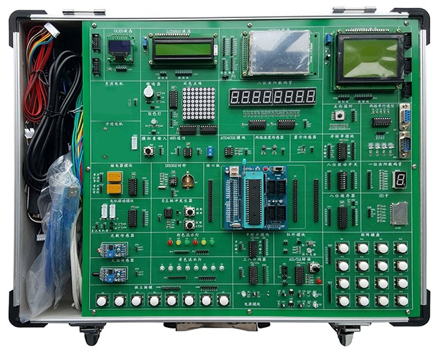 單片機(jī)實(shí)訓(xùn)實(shí)驗(yàn)臺(tái),單片機(jī)技術(shù)實(shí)驗(yàn)箱,單片機(jī)與嵌入式實(shí)驗(yàn)室,萬(wàn)能單片機(jī)實(shí)驗(yàn)開(kāi)發(fā)系統(tǒng)、單片機(jī)開(kāi)發(fā)應(yīng)用技術(shù)綜合實(shí)驗(yàn)裝置是電子與通信、自動(dòng)化信息工程技術(shù)、計(jì)算機(jī)基礎(chǔ)課實(shí)訓(xùn)室等課程實(shí)驗(yàn)實(shí)訓(xùn)。單片機(jī)實(shí)驗(yàn)室是專(zhuān)為電子、通信和自動(dòng)化等專(zhuān)業(yè)而設(shè)立,單片機(jī)實(shí)驗(yàn)室設(shè)備適應(yīng)《微機(jī)原理與接口技術(shù)》《單片機(jī)原理與應(yīng)用》課程的需要,滿(mǎn)足了正常實(shí)驗(yàn)教學(xué)的同時(shí),設(shè)立了開(kāi)放性實(shí)驗(yàn)室功能,充分調(diào)動(dòng)了學(xué)生學(xué)習(xí)的積極性,方便了學(xué)生和老師實(shí)驗(yàn)程序的編制和調(diào)試。單片機(jī)實(shí)訓(xùn)設(shè)備主要承擔(dān)《單片機(jī)原理》、《微機(jī)接口與技術(shù)》等相關(guān)課程的實(shí)驗(yàn)、課程設(shè)計(jì)及畢業(yè)設(shè)計(jì)。